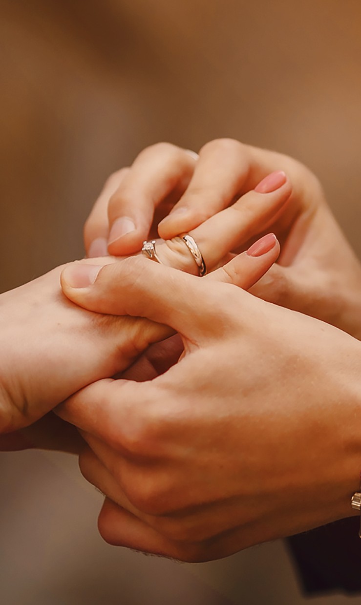 Dès réception, nous vous invitons à revenir en boutique pour définir les gravures qui viendront se loger au creux de vos bagues. Nous vous remettons ensuite vos alliances dans leur écrin avant qu’elles rejoignent le doigt de votre moitié.