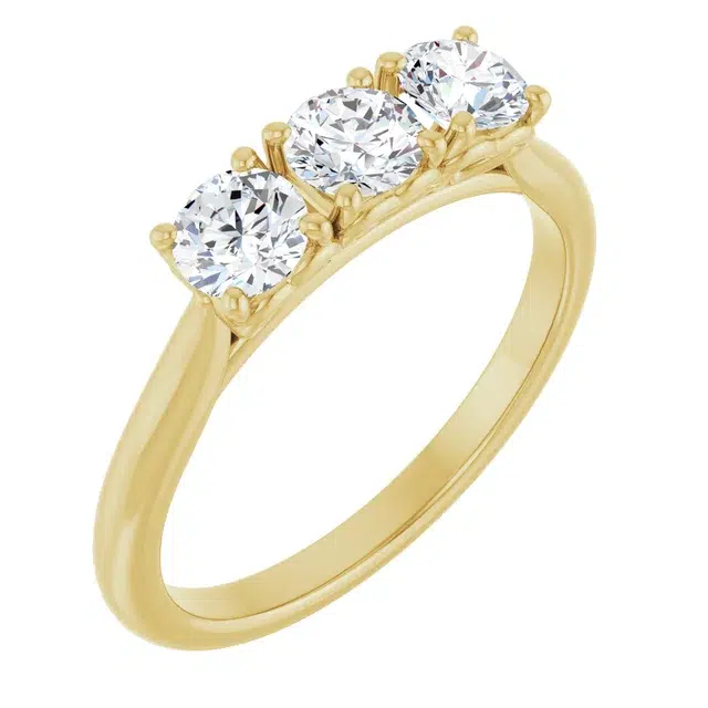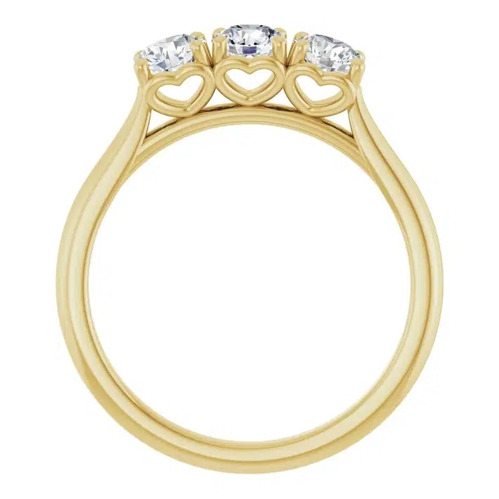 Création artisanale de l’atelier Golaz. Bague en or blanc avec 3 diamants cultivés en laboratoire, serti griffes et arborant discrètement des cœurs sur les côtés.