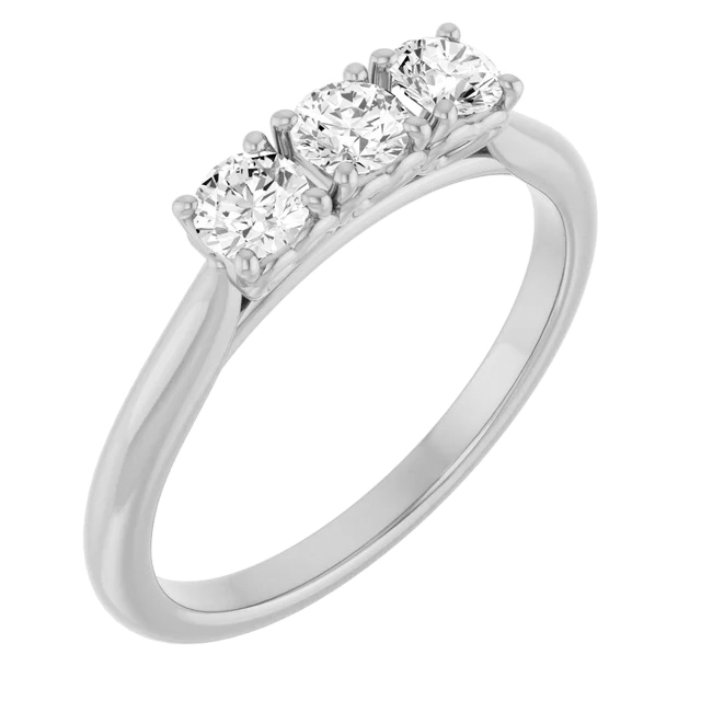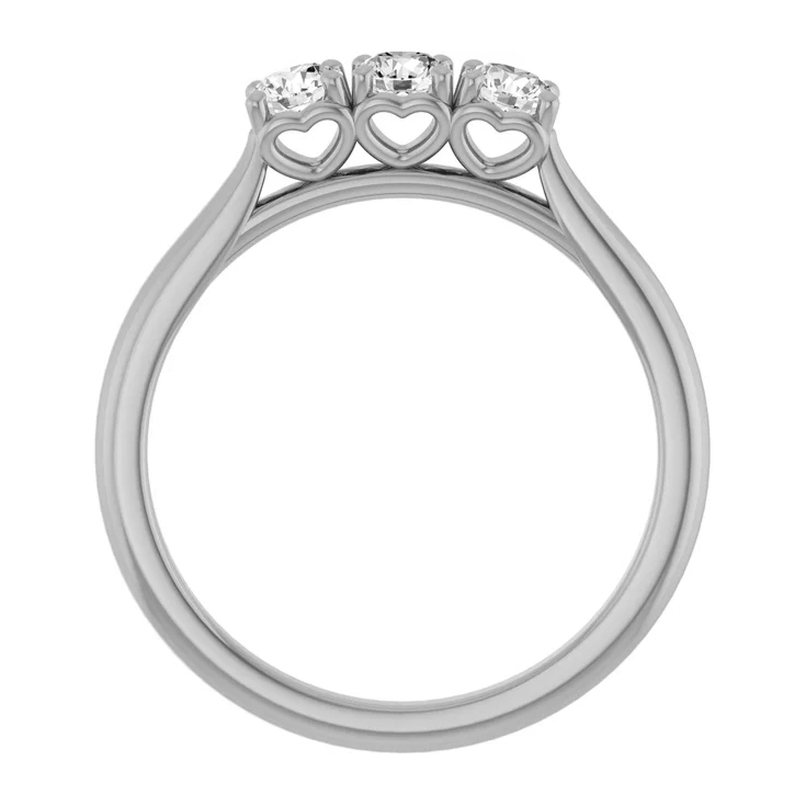 Création artisanale de l’atelier Golaz. Bague en or blanc avec 3 diamants cultivés en laboratoire, serti griffes et arborant discrètement des cœurs sur les côtés.