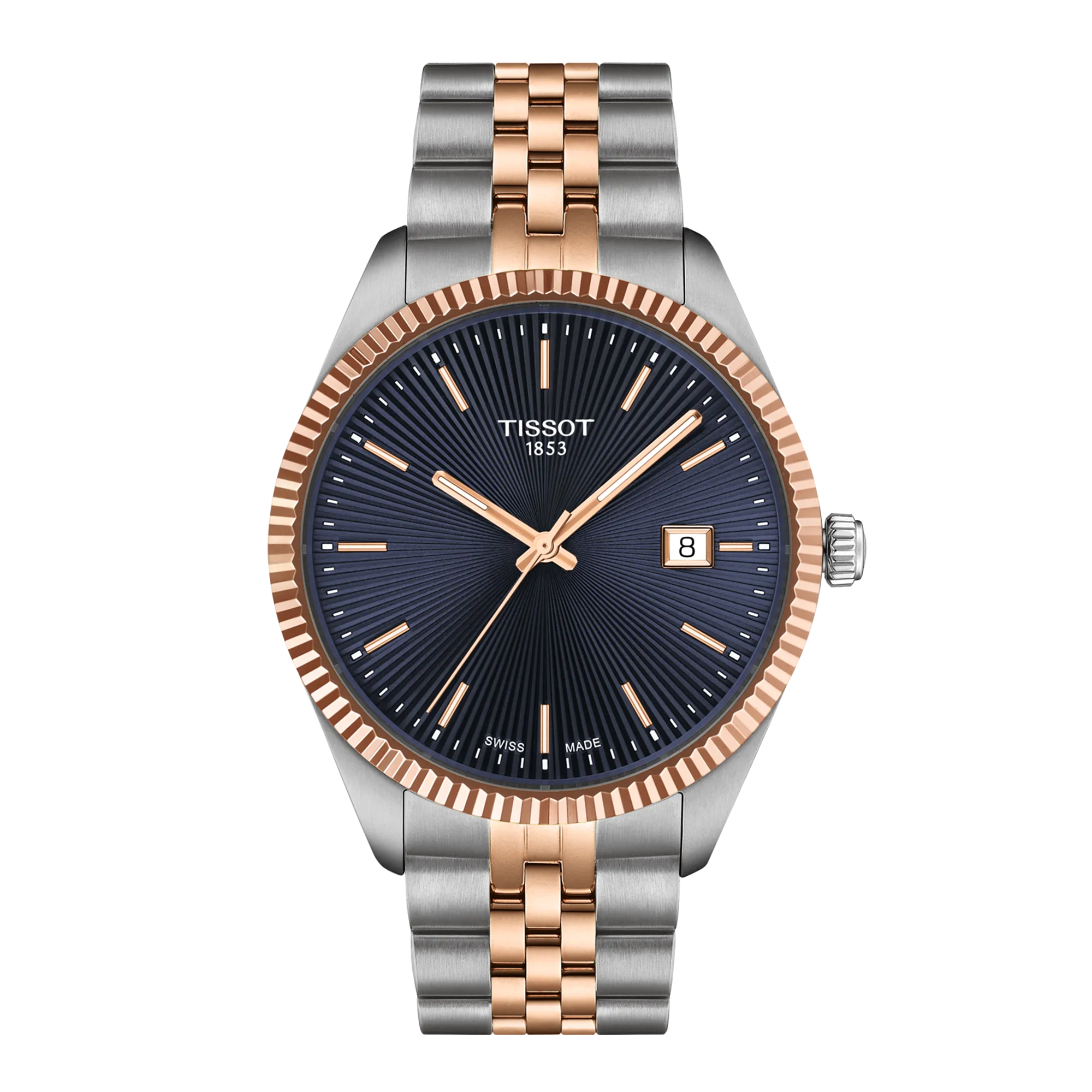 Cette version de la Tissot Ballade 40mm possède un boîtier de 40 mm en acier inoxydable 316L. Une glace saphir inrayable et antireflet protège son cadran, qui dispose d’un affichage de la date à 3 heures. Les aiguilles et les index contrastent avec le cadran et le revêtement SuperLuminova® garantit une excellente lisibilité.