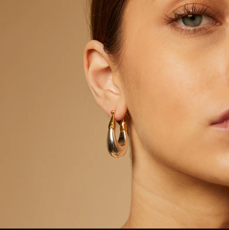 Boucles d’oreilles plaquées argent avec des finitions dorées.