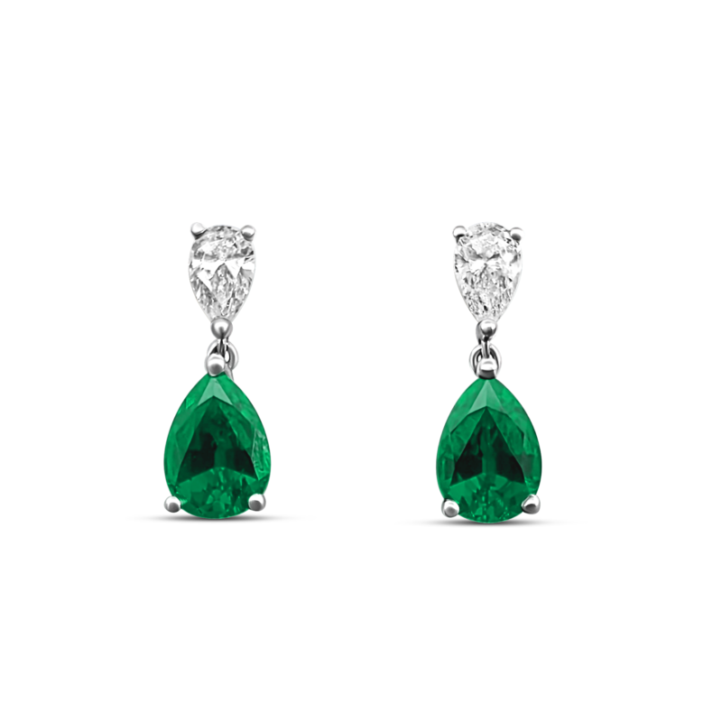 Création artisanale de l’atelier Golaz, les boucles d’oreilles Tears of Joy sont sublimées par deux émeraudes taille poire et deux diamants taille poire, suspendus comme deux larmes précieuses célébrant l’émotion pure et la joie intense.