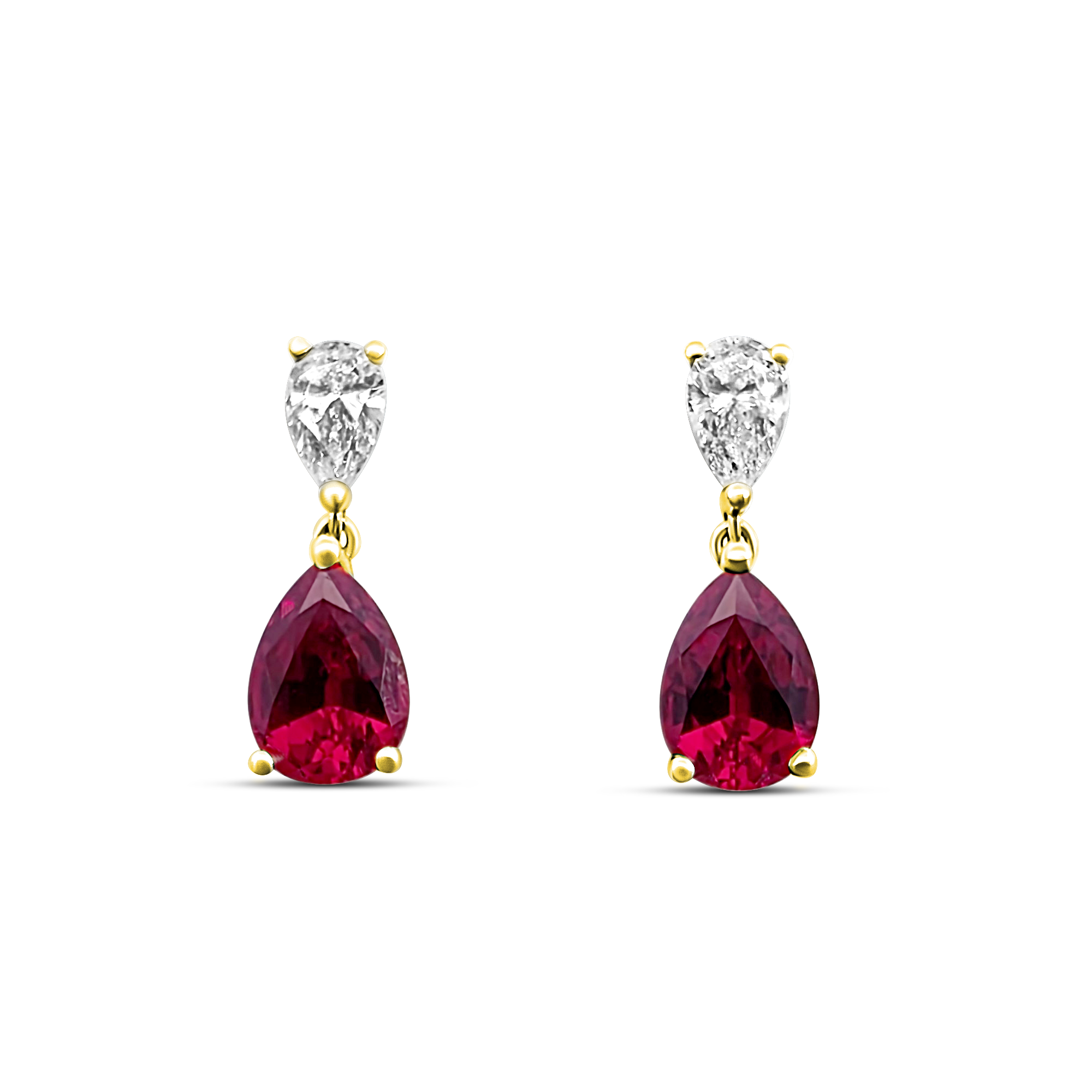 Création artisanale de l’atelier Golaz, les boucles d’oreilles Tears of Joy sont sublimées par deux rubis taille poire et deux diamants taille poire, suspendus comme deux larmes précieuses célébrant l’émotion pure et la joie intense.