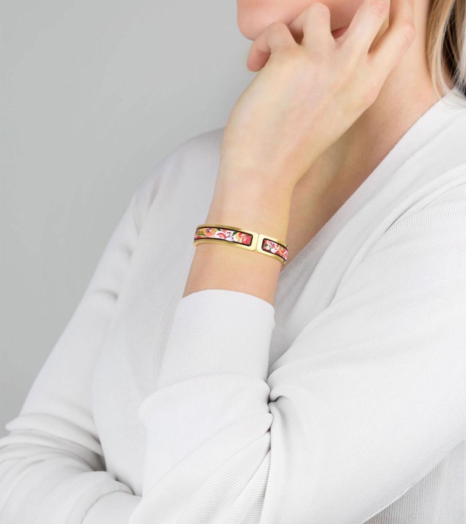 Ballerina est le plus délicat des bracelets à CLIP FREYWILLE. Elégant et polyvalent, il se compose de deux plaques émaillées à la main placées sur les deux côtés du fermoir. Le motif en émail grand feu, est éternel et étincelant. Le bracelet s »enroule joliment autour de votre poignet, confortable, il se porte de jour comme le soir.