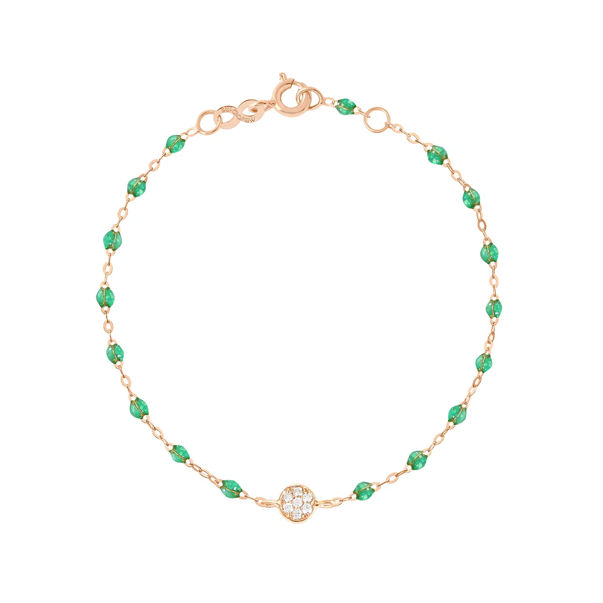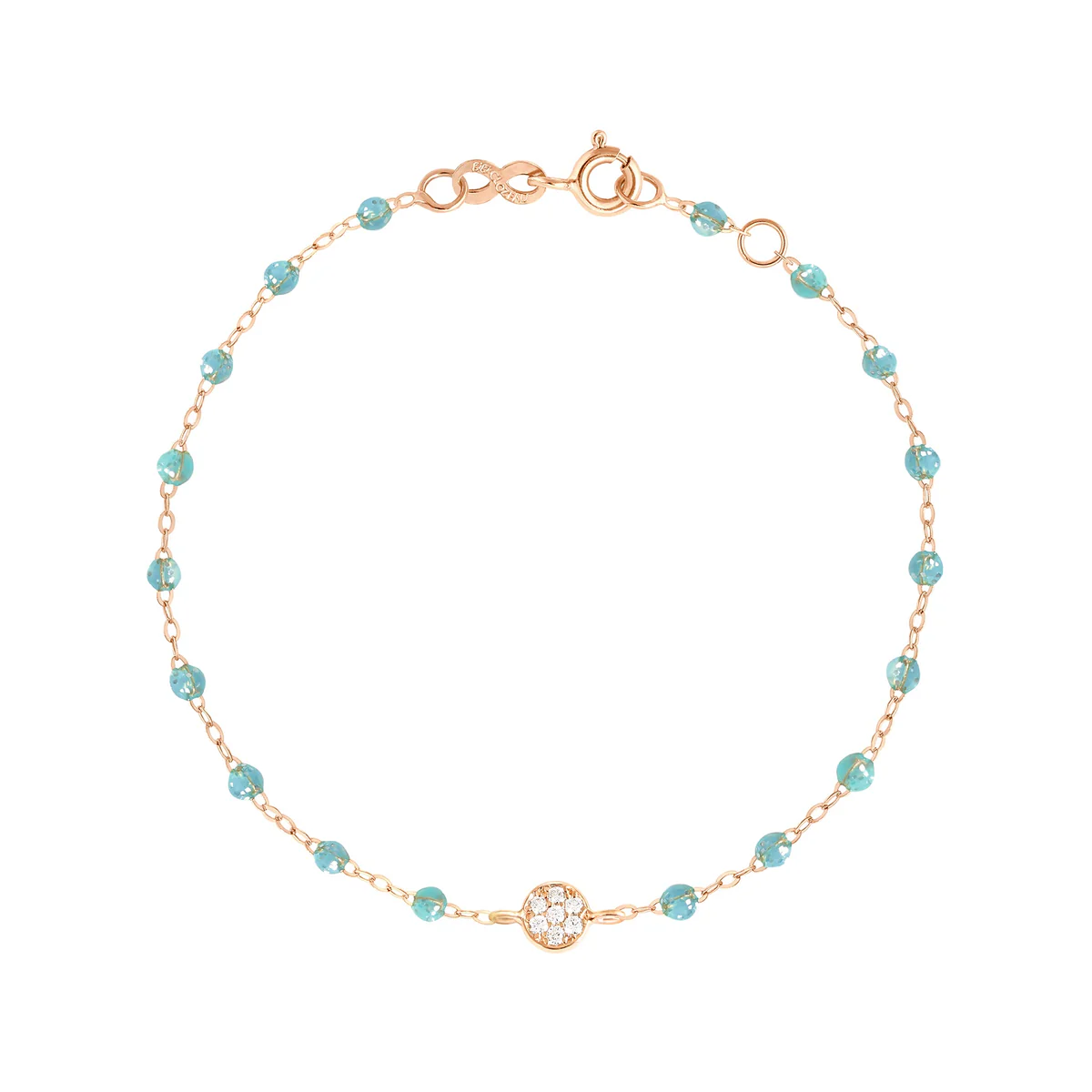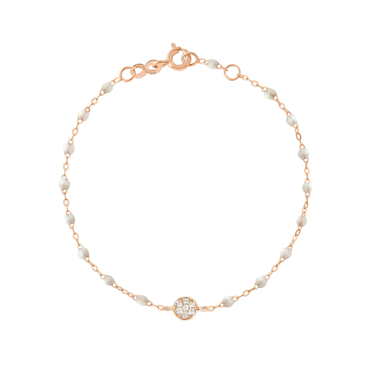 Tel un nuage de poussière d’étoiles qui se balade et sème délicatement partout où il passe, de la joie, le bracelet « puce » sur chaîne Classique Gigi par gigi CLOZEAU est un subtil porte-bonheur. 7 diamants, or 18 carats et élégantes perles de résine.