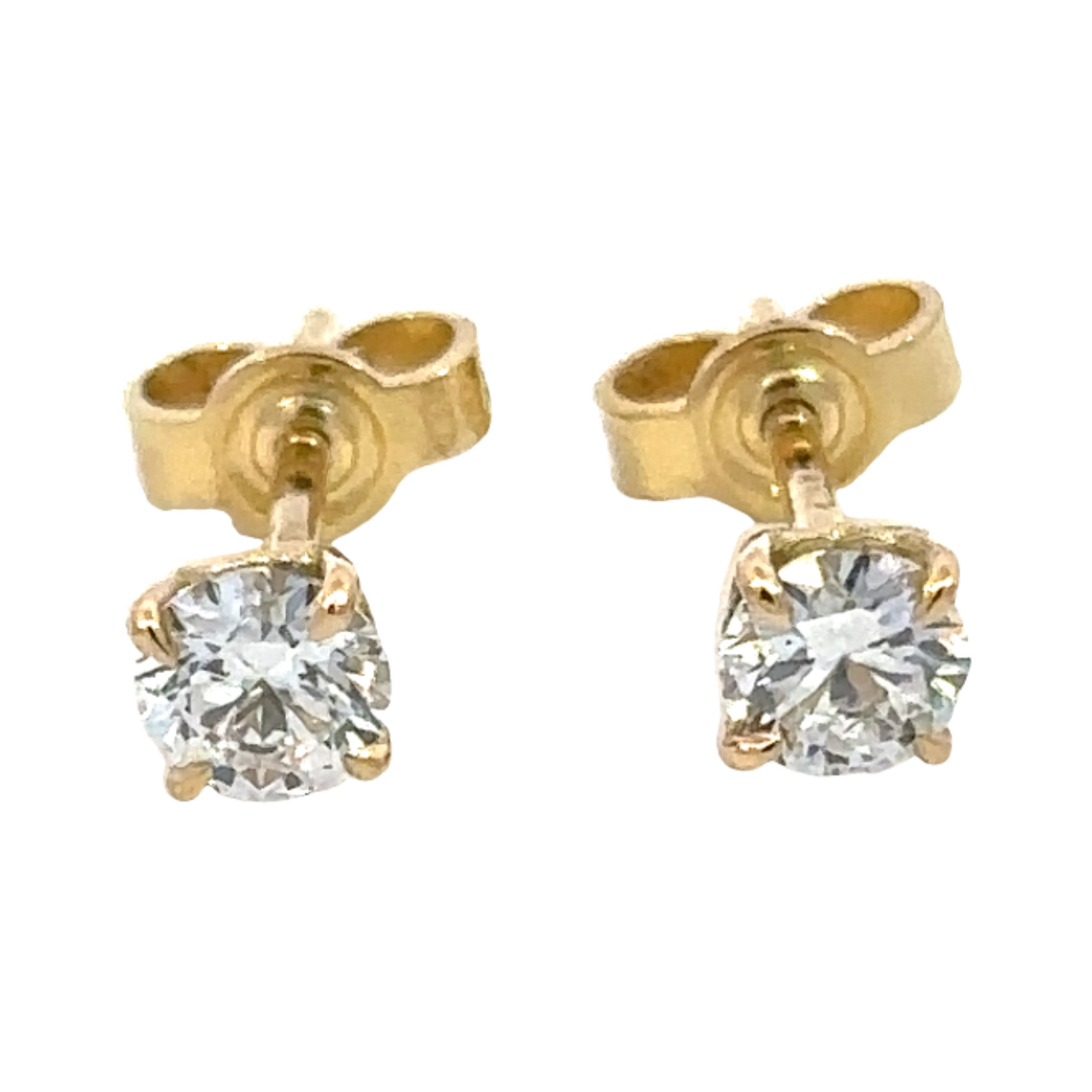 Création artisanale de l’atelier Golaz. Clous d’oreilles sertis de diamants cultivés en laboratoire sertis dans un chaton arborant un discret coeur sur chaque faces
