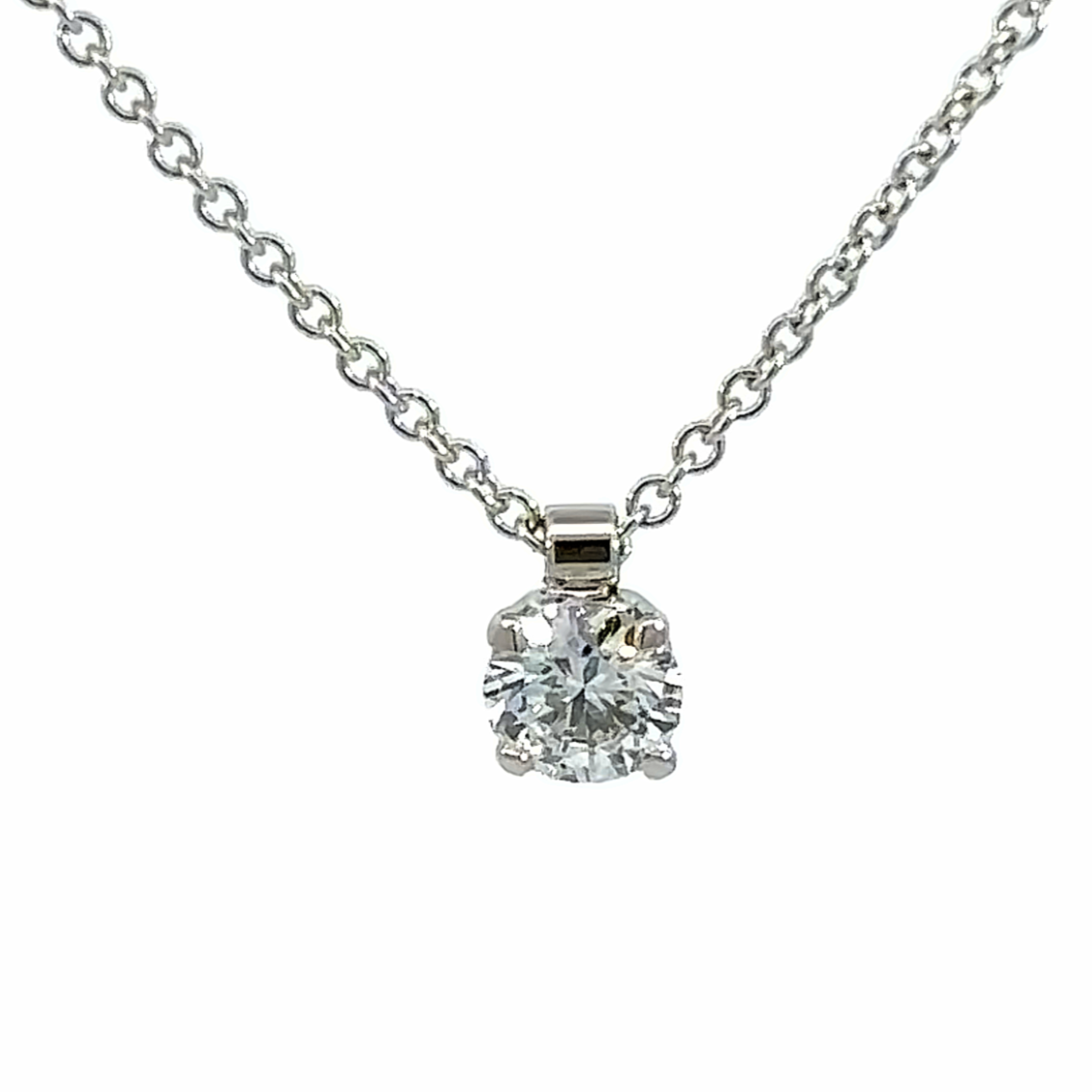 Création artisanale de l’atelier Golaz. Collier maille forçat avec un diamant cultivé en laboratoire serti sur un chaton 4 griffes arborant un discret coeur sur chaque côtés.