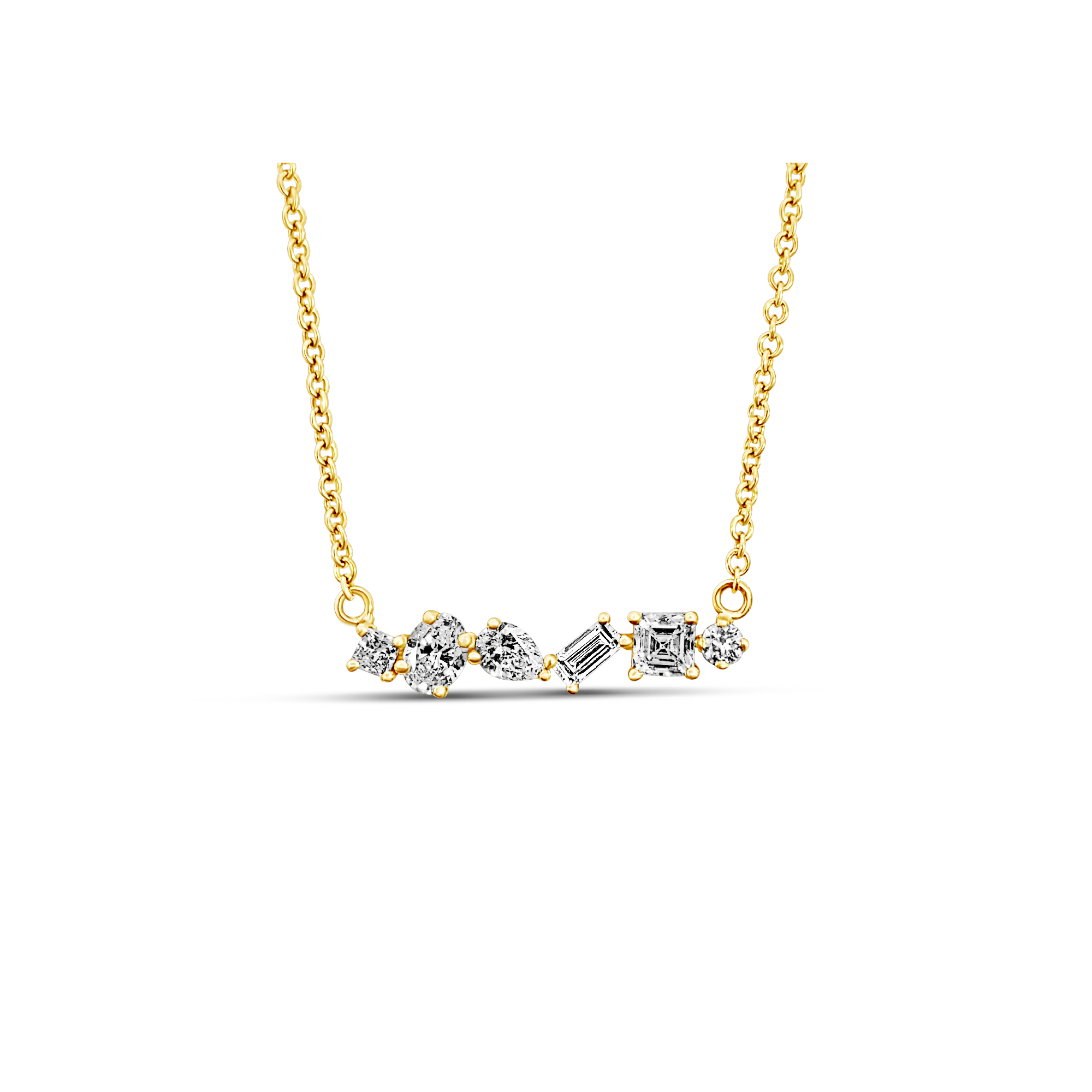 Tel un kaléidoscope, cette collection de nos ateliers fascine et hypnotise. Les multiples tailles de diamants jouent des formes et de la lumière pour offrir un spectacle scintillant. Elle se décline en toutes les couleurs d’or et peut être réalisée avec des pierres de couleurs sur demande.