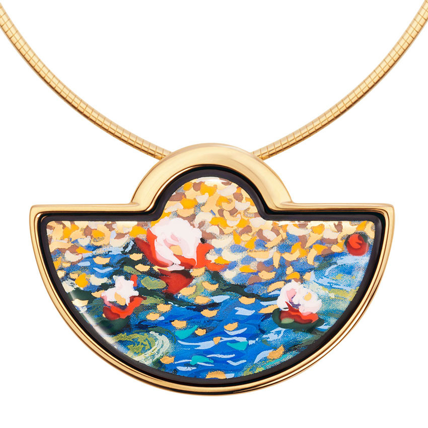 Ce pendentif Halfmoon unique en son genre met en valeur l »émail grand feu de la marque FREYWILLE dans une forme discrète et élégante. Un design intemporel pour un bijou de collection qui se porte au quotidien. Un motif coloré, rayonnant et complexe, qui capte le regard .