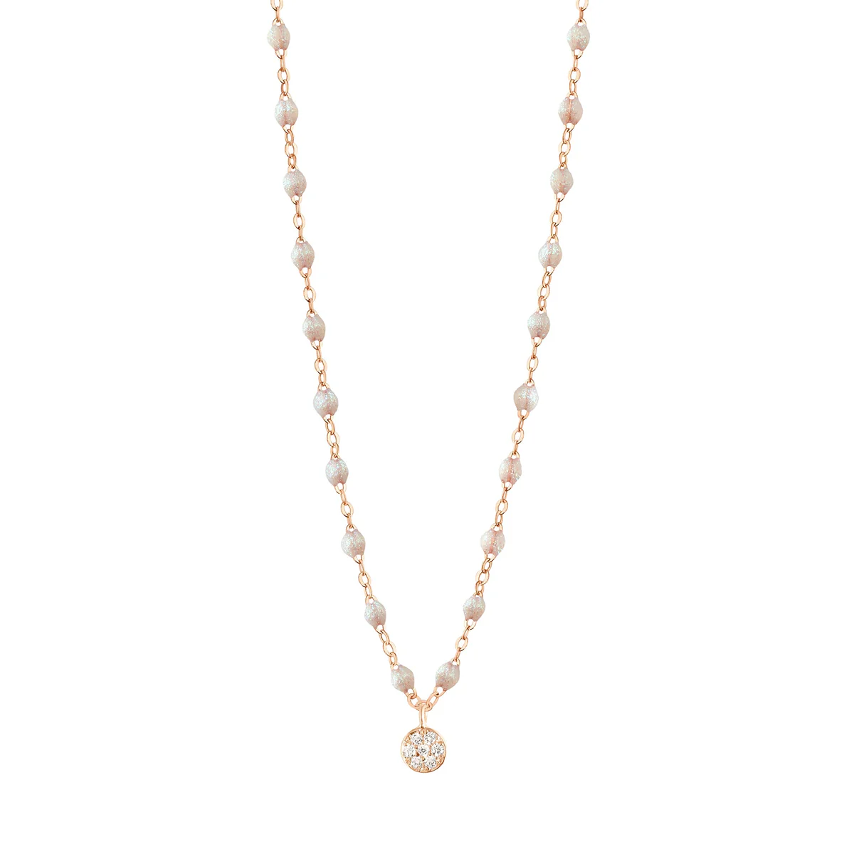 Tel un nuage de poussière d’étoiles qui se balade et sème délicatement partout où il passe, de la joie, le collier « puce » sur chaîne Classique Gigi est un subtil porte-bonheur. Collier puce gigi CLOZEAU, or rose 18 carats et 7 diamants.