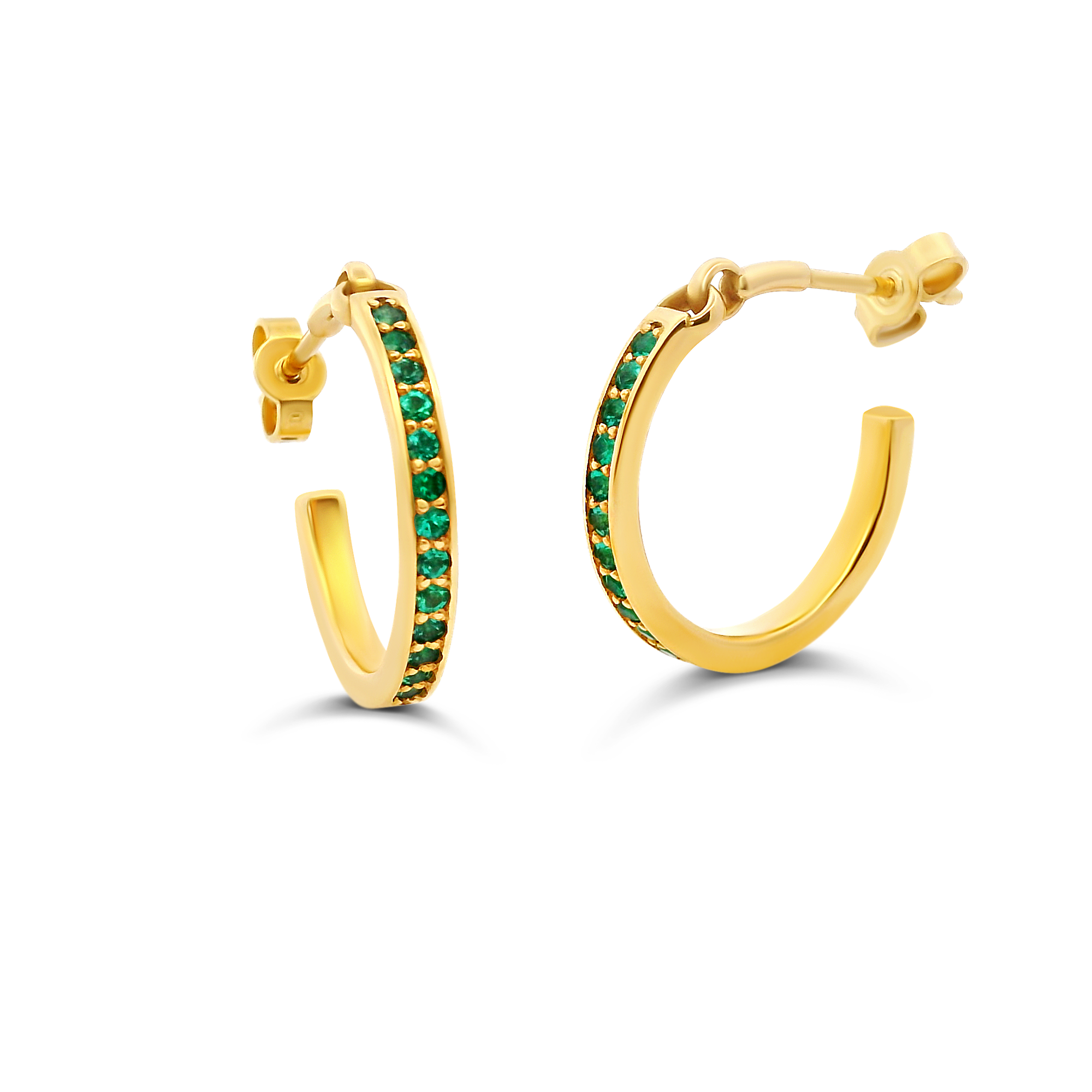 Création artisanale de l’atelier Golaz. Boucle d’oreilles barette en or jaune style créole sertie de de 26 emeraudes de culture