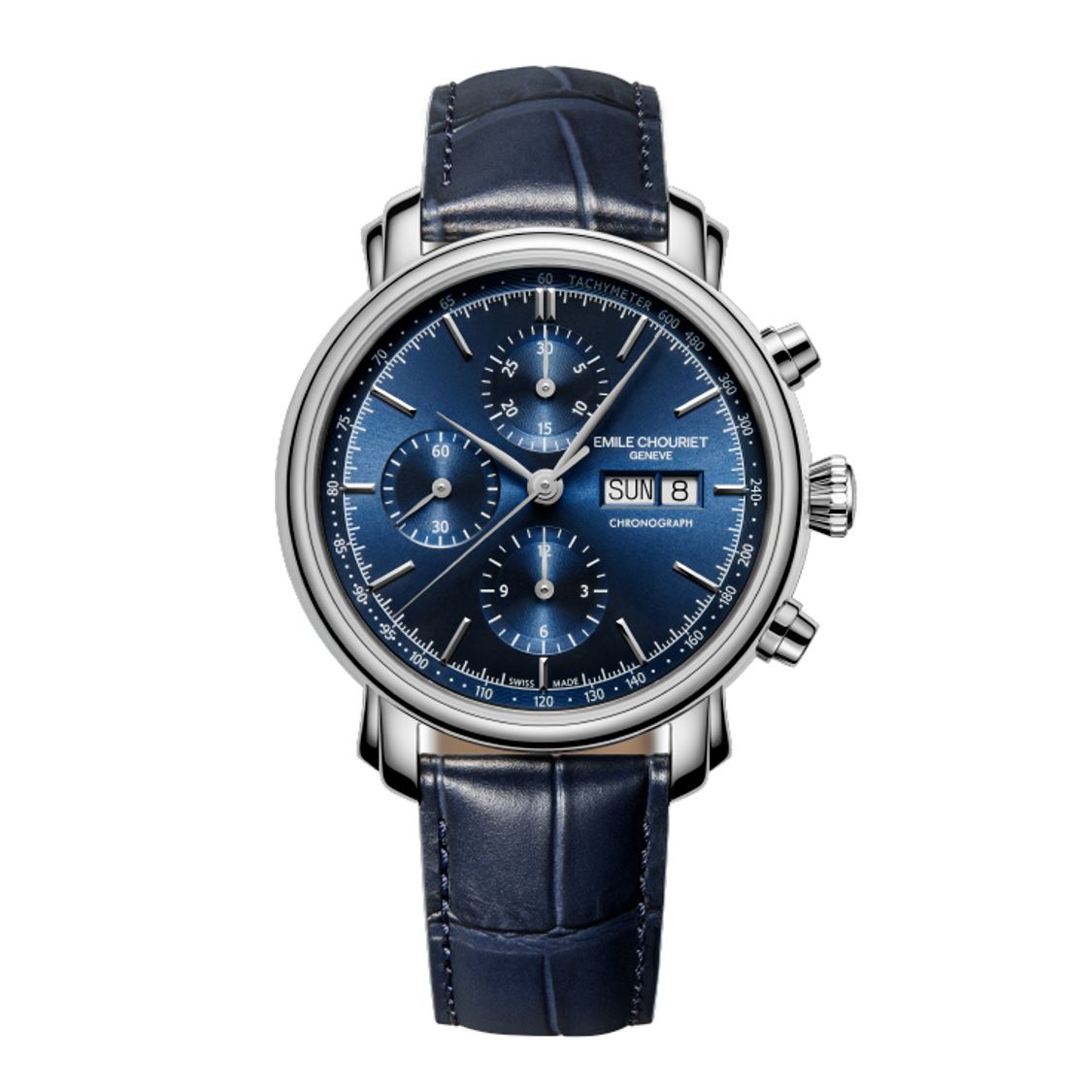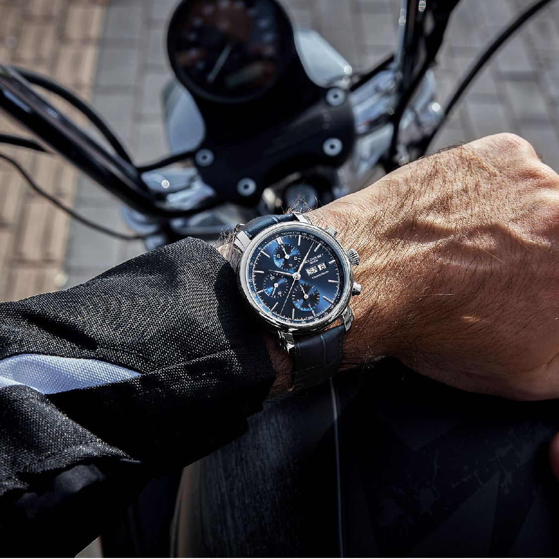 l’élégance classique suisse avec une touche contemporaine. Son cadran bleu soleillé, logé dans un boîtier en acier inoxydable de 42 mm, offre une lisibilité optimale et une esthétique raffinée. Les cornes en forme d’ailes, signature de la marque, ajoutent une touche distinctive à son design.