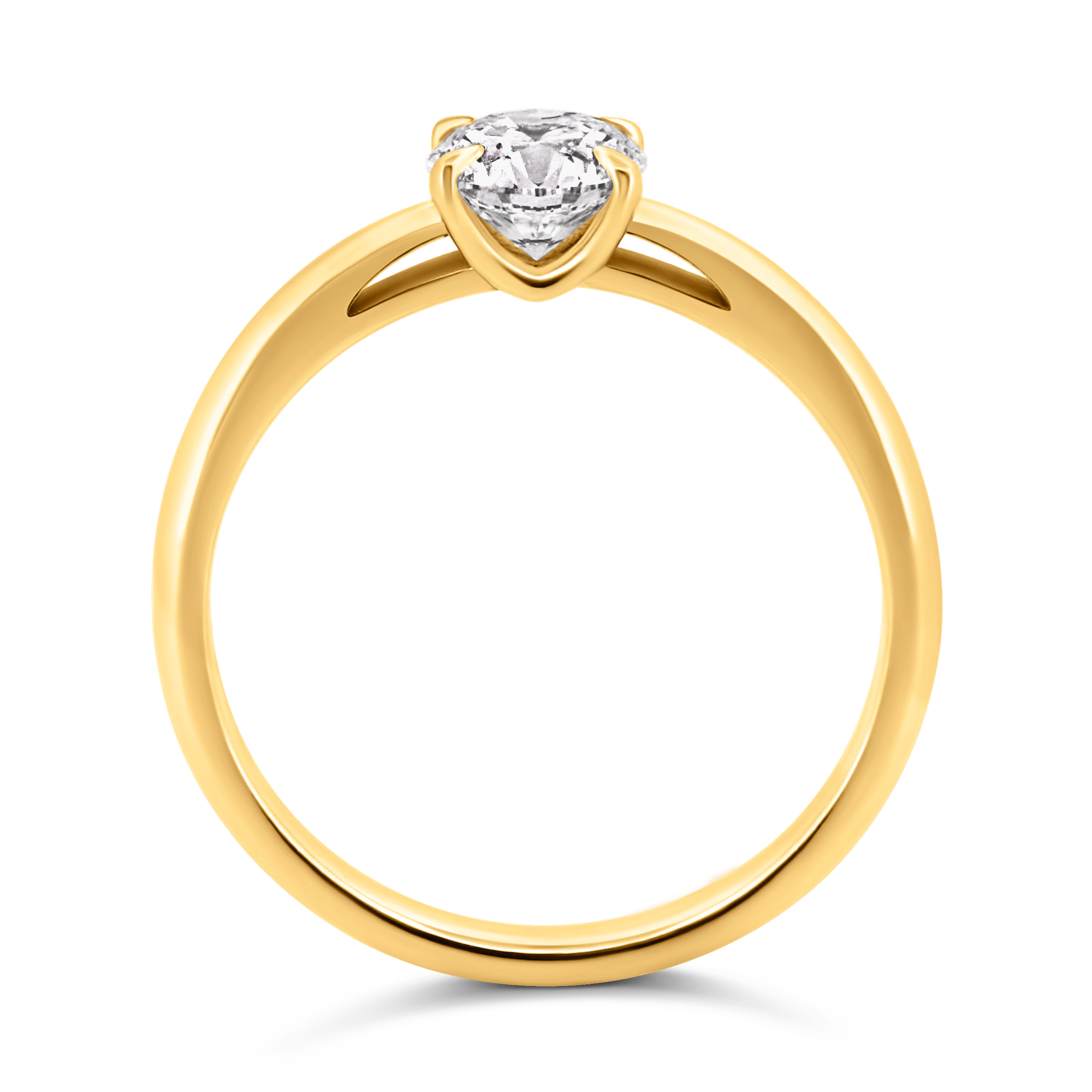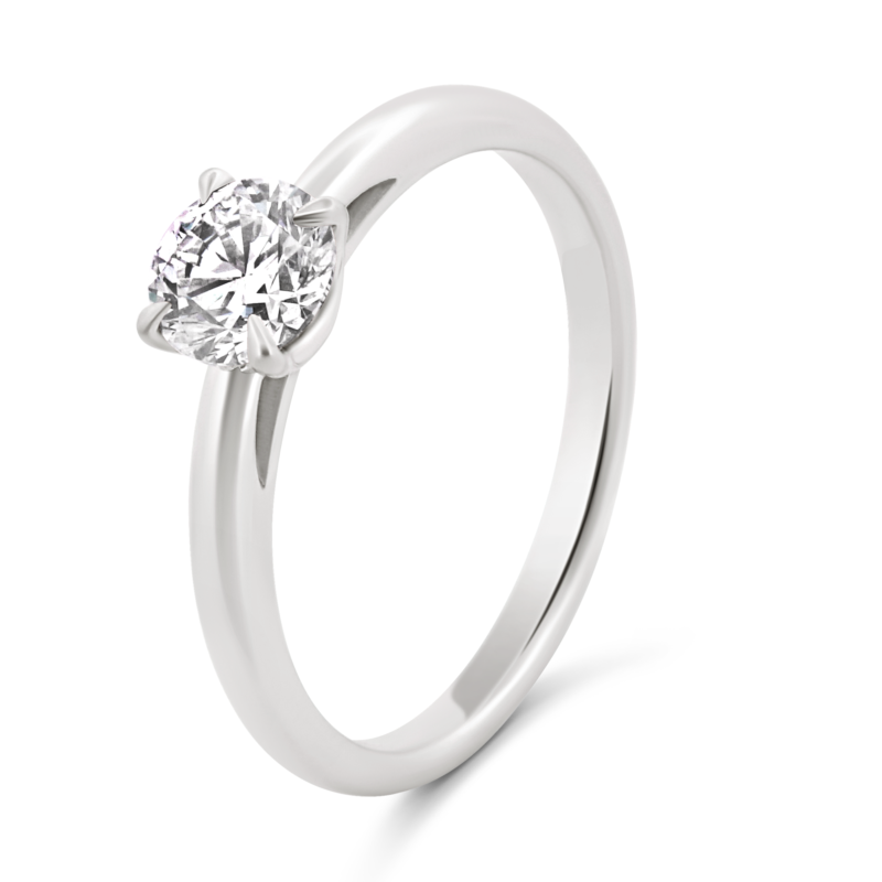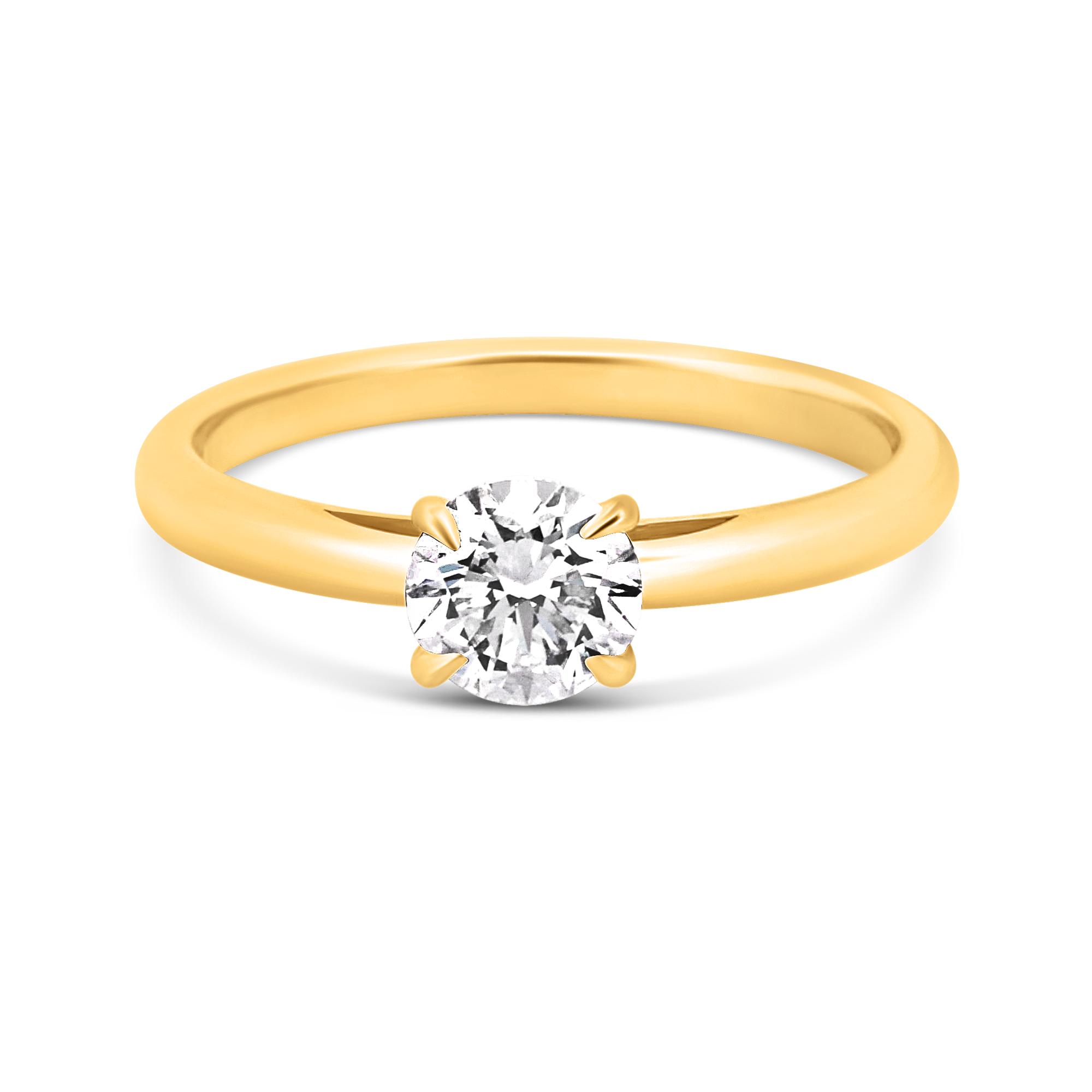Création artisanale de l’atelier Golaz. Solitaire serti d’un diamant cultivé en laboratoire monté sur un chaton 4 griffes légèrement évasé Type pierre : Diamant Certificat pierre : IGI, GIA et CanadaMark