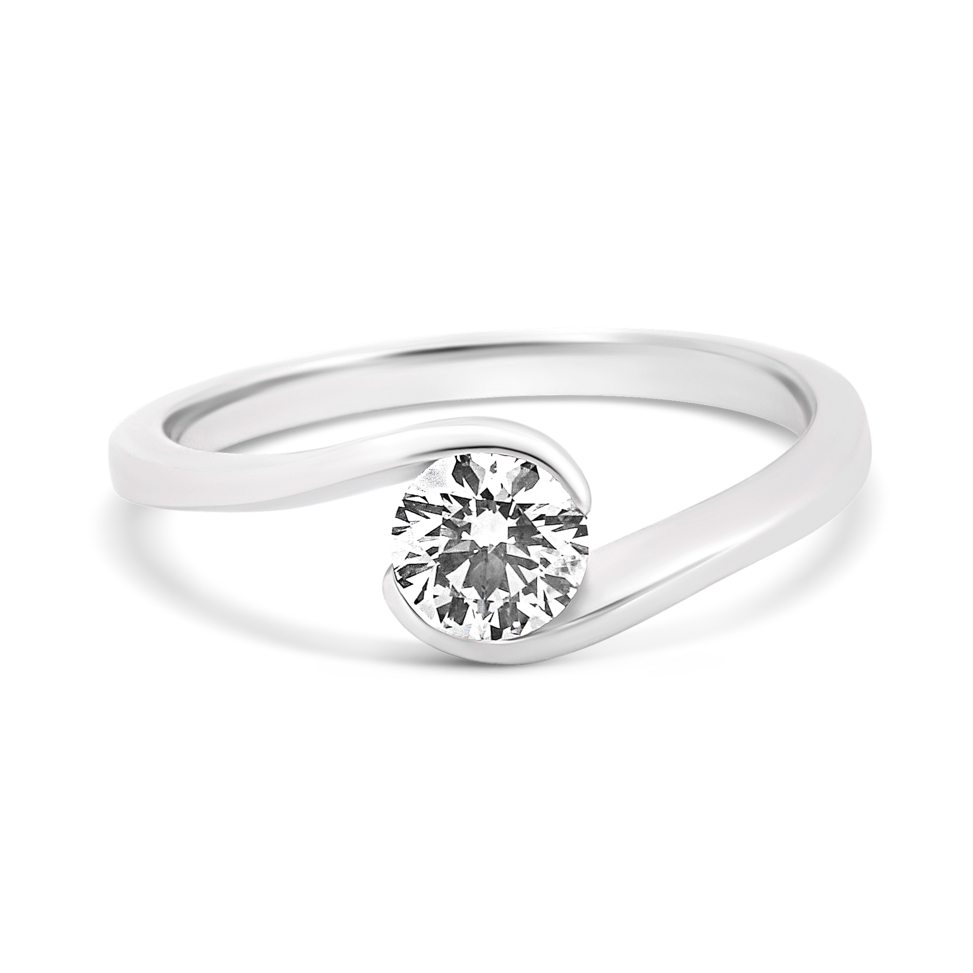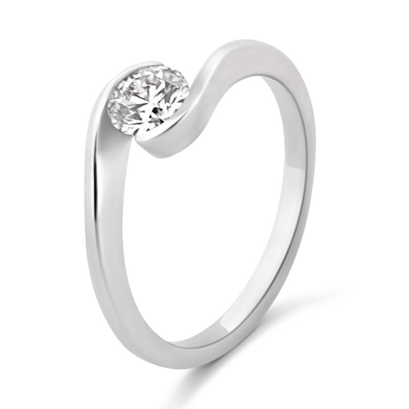 Création artisanale de l’atelier Golaz. Solitaire double S serti d’un diamant cultivé en laboratoire Type pierre : Diamant Certificat pierre : IGI, GIA et CanadaMark