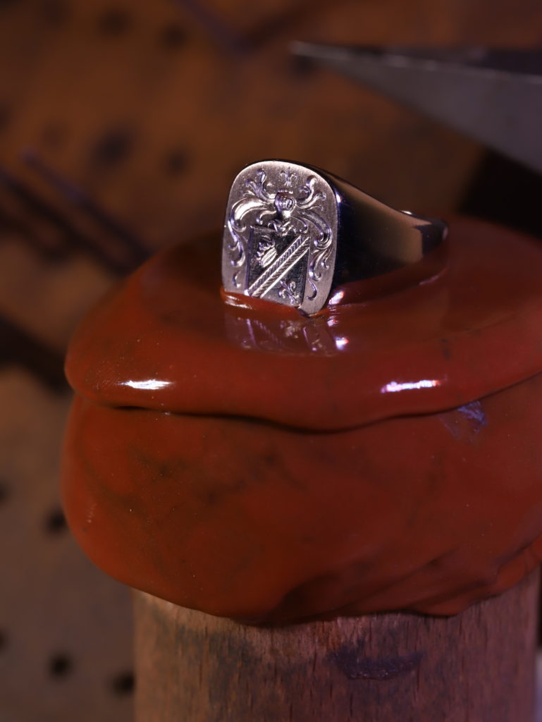 Outre ces options, notre atelier vous propose un service exclusif de gravure héraldique. C’est une invitation à célébrer et à perpétuer votre héritage familial en immortalisant vos armoiries sur une chevalière en or. Ce service, alliant finesse technique, vous permet de renouer avec votre histoire familiale et de la porter fièrement au quotidien.